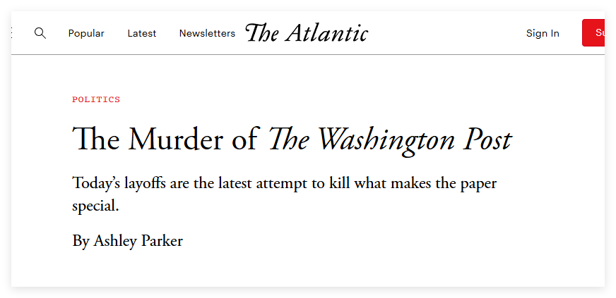 曾经供职于《华盛顿邮报》的美国《大西洋月刊》记者阿什利·帕克,在一篇关于其前东家裁员的文章中更是怒斥贝索斯等人是在“谋杀”这么一份有着近150年历史的报纸。